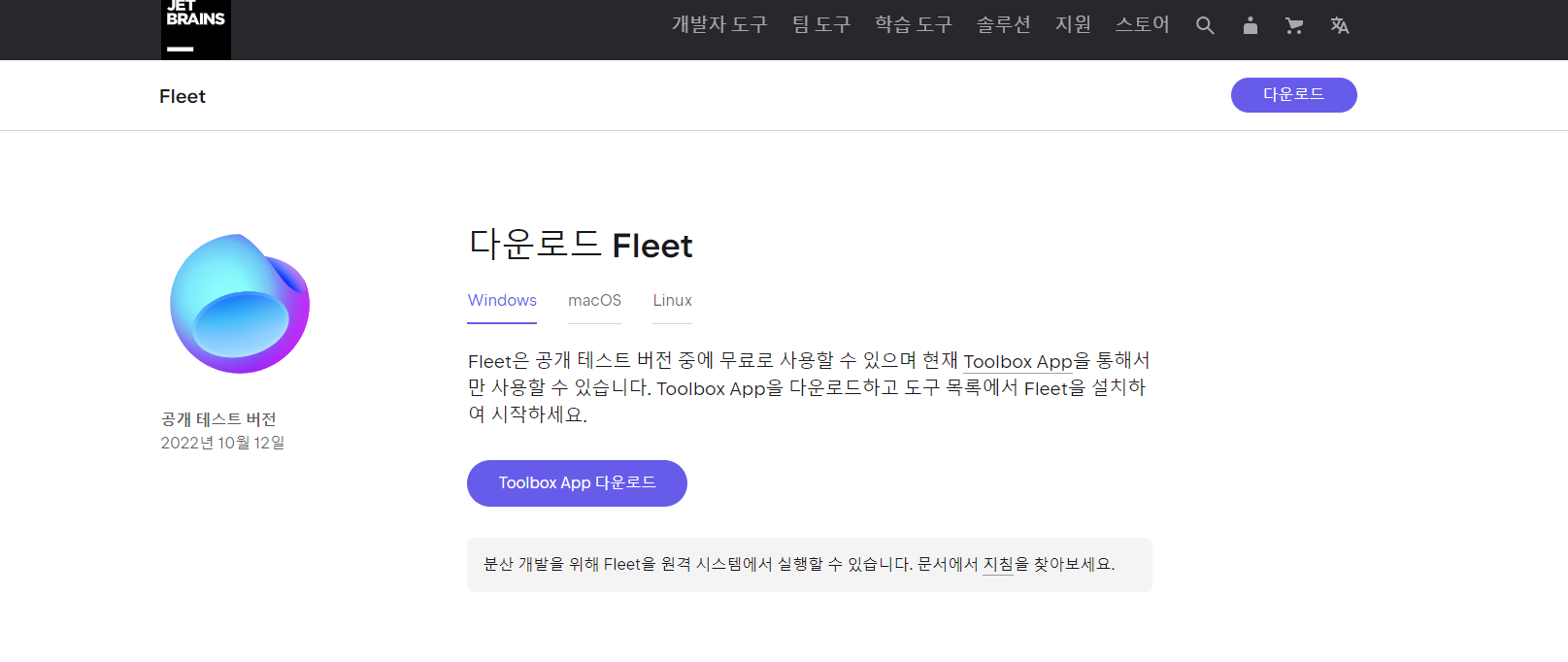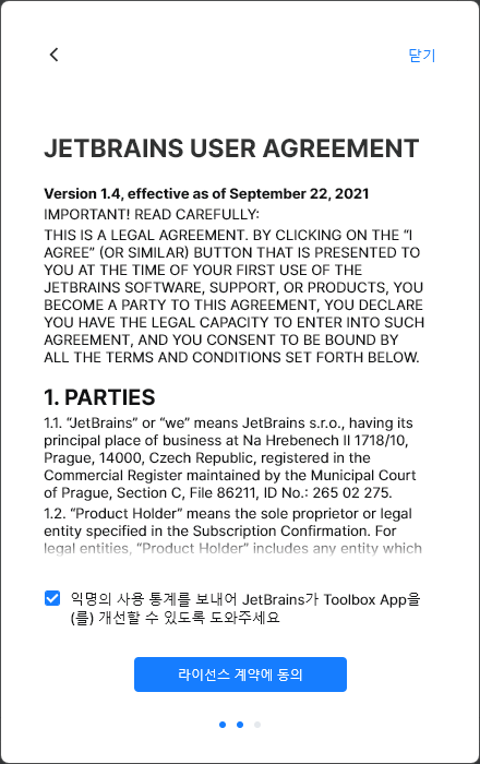 라이센스 동의 3. toolbox 설치후 fleet 설