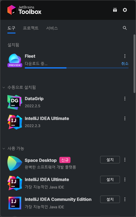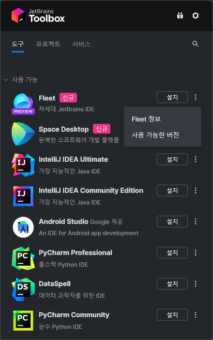 1. https://www.jetbrains.com/ko-kr/fleet/ 에서 다운로드