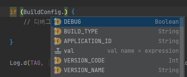 디버그 인지 체크 BuildConfig 내에 BUILD_TYPE, APPLICATION_ID, VERSION 관련 값이 있어서 매우 유용하게 쓸수 있을것같다.