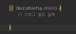 코드내에서 디버그 빌드일때, 릴리즈 빌드일때 다르게 로직이 실행되야하는 경우가 있을때 BuildConfig.DEBUG 값을 이용