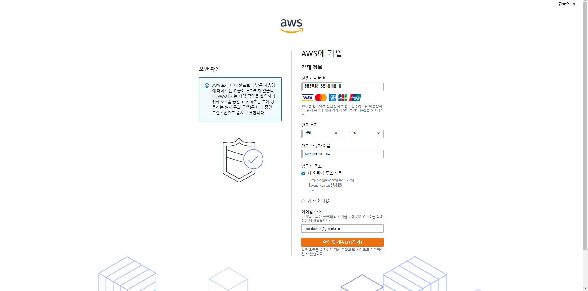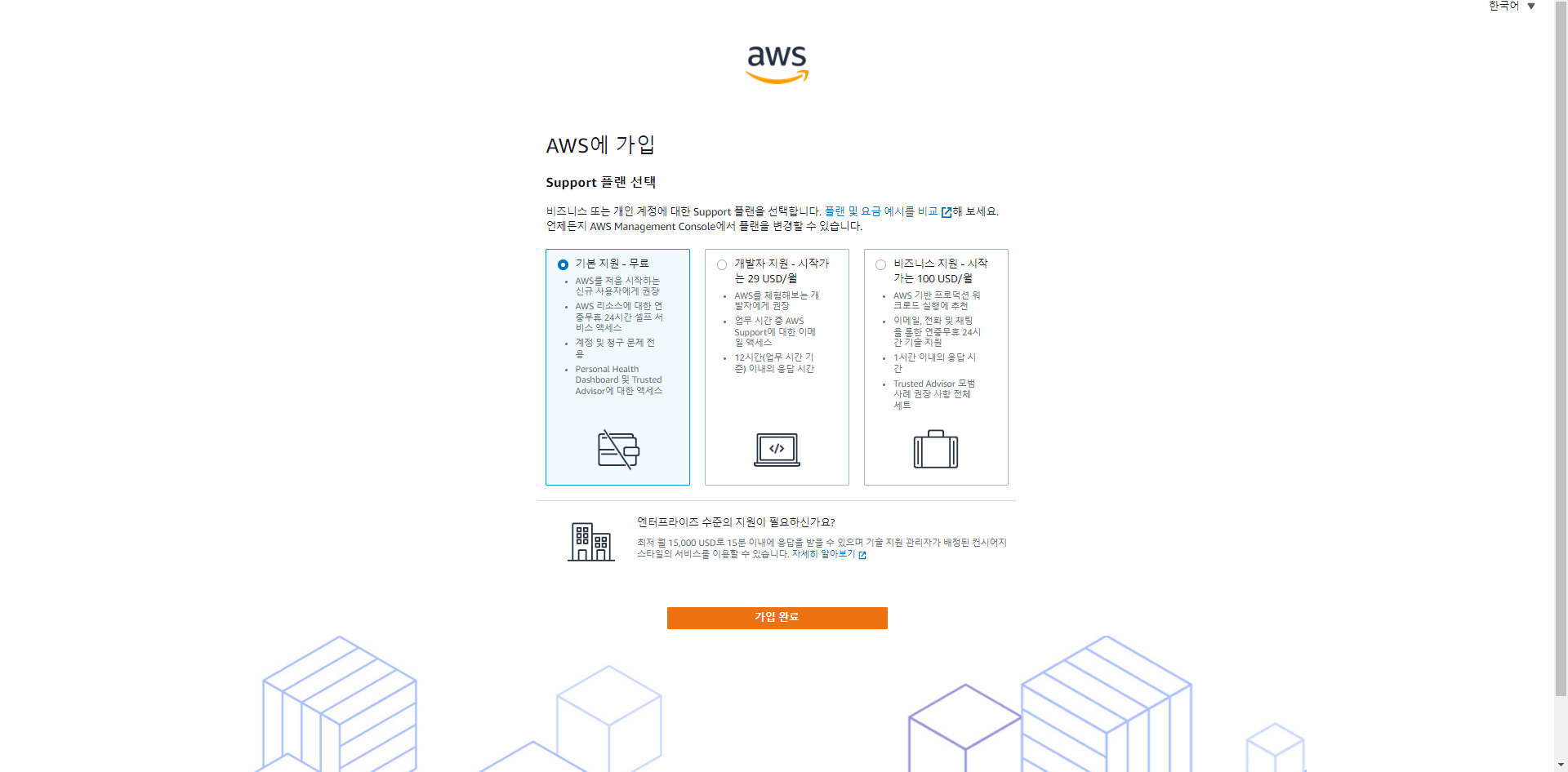 1. https://aws.amazon.com/ko/console/ 페이지 접속하여 오른쪽 상단 "AWS 계정 생성" 클릭