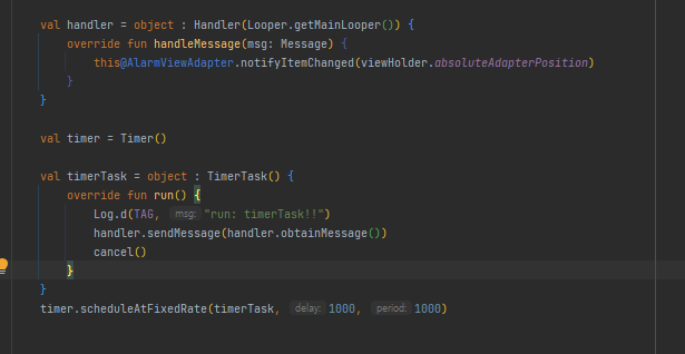 recyclerview 를 통해 adapter 를 연결하고 adapter내에서 TimerTask를 생성하여 Timer 스케쥴을 등록함.