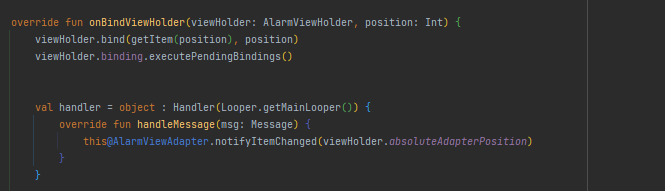 recyclerview adapter에서 onBindViewHolder 메소드중 handler 를 구현하여 handlerMessage 내부에서 position 값을 사용하니 발생